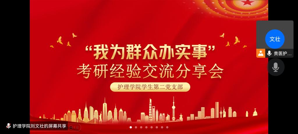 11月30日,为充分发挥优秀学生党员的先锋模范作用,用心用情为学生办实事解难题,美加墨世界杯官方网站学生第二党支部在腾讯会议线上举办了“我为群众办实事”——考研经验交流分享会主题党日活动,研究生党员代表黄虹久面向支部党员及参会的美加墨世界杯官方网站2019级本科生作了考研经验分享报告,会议由党支部书记刘文壮主持。