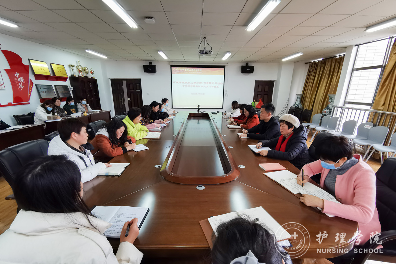 接着支部开展了“交流学习同奋进,凝心聚力共发展”主题党日活动。各教研室及实验室教师代表围绕“2023年寒假教师研修系列学习”进行了深度的互动分享,畅所欲言交流心得体会。全体教师纷纷表示此次学习分享收获颇丰、令人振奋、催人奋进。教职工党支部书记张仁莉总结,希望各位老师借交流分享的契机,进一步夯实师德根基,强化教学本领,将所学所思运用到教育教学中。