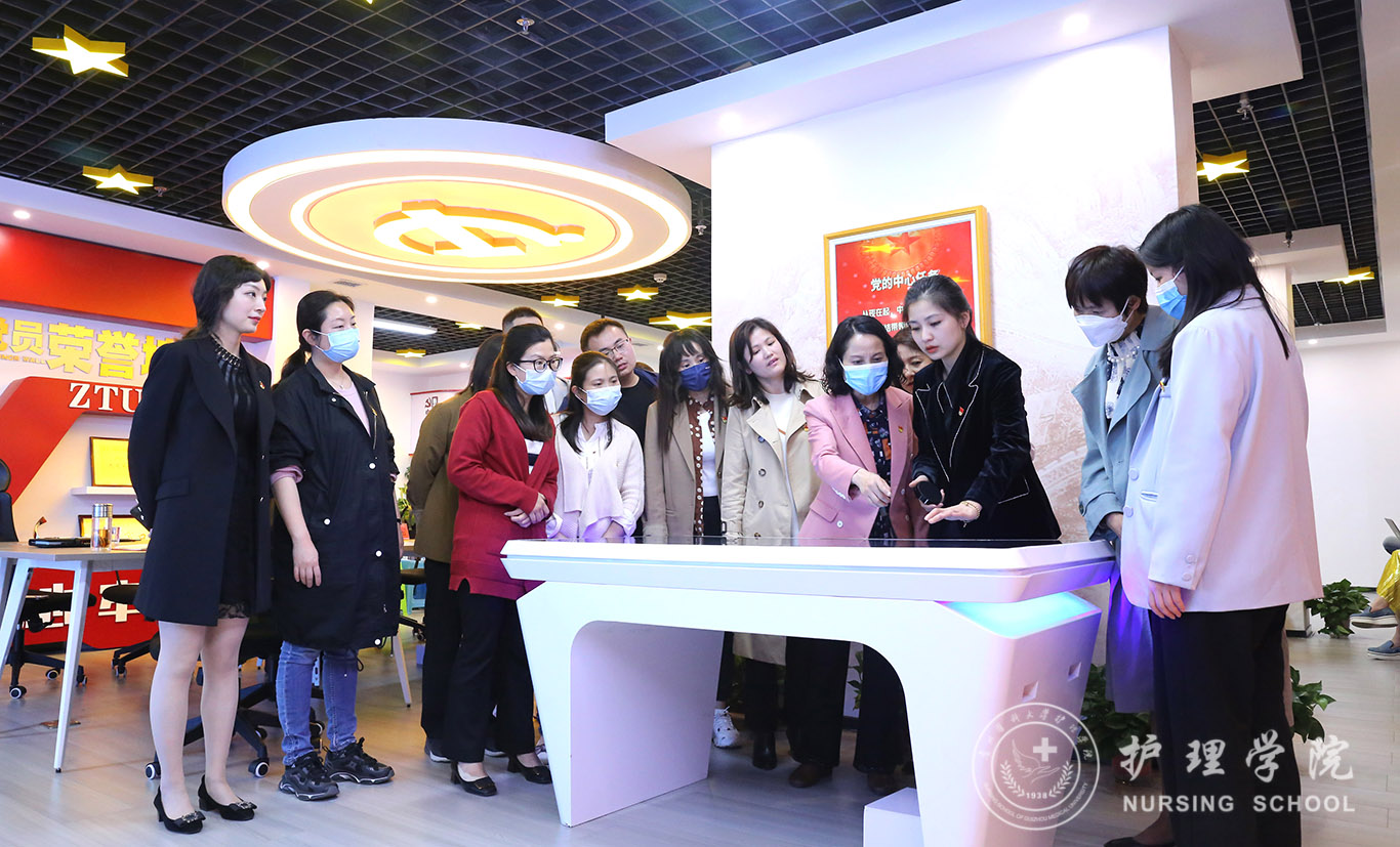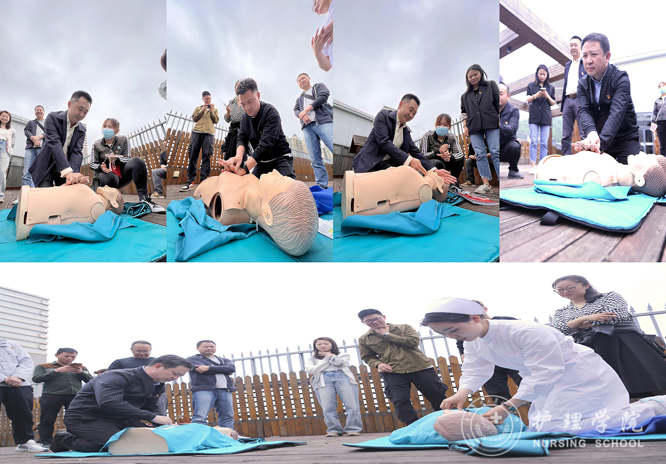 活动中,陈鹏宇和杨英分别介绍了各自党委、支部党建工作开展情况,随后在解说员的指引下,学院党员参观了天眼传媒有限责任公司的多功能智慧党建空间,通过参观该空间的线上红色展馆学习了延安精神,亲身体验了VR座椅上的红色之旅。在充分感受了智慧党建的强大功能后,全体参会人员共同学习了数字党课《深化党和国家机构改革合理配置——宏观管理部门职能》,还开展了党的二十大精神和党史知识趣味抢答。活动最后一项由学院师生党员代表卢海霞、马丽、黄虹久为对方党员开展了心肺复苏术和海姆立克急救术的培训。
