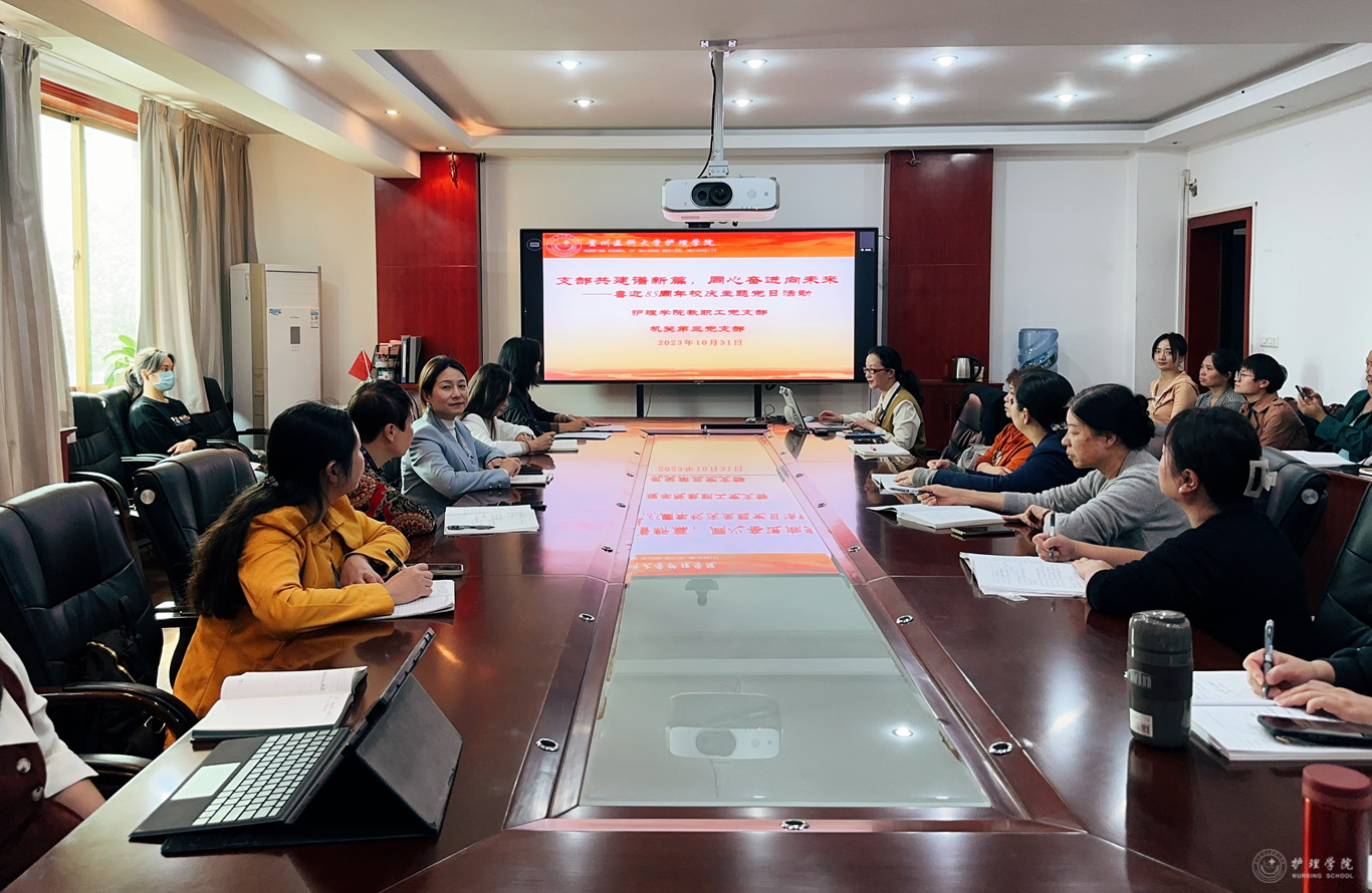 10月31日下午,美加墨世界杯官方网站教职工党支部与附属医院机关第三党支部(护理部党支部)在北校区行政楼五楼党员活动室开展了“支部共建谱新篇,同心奋进向未来——喜迎85周年校庆”主题党日活动,活动由附属医院机关第三党支部书记、附属医院护理部副主任蔡鹏主持。美加墨世界杯官方网站副处级组织员张黎、附属医院护理部副主任顾颖参加了此次活动。