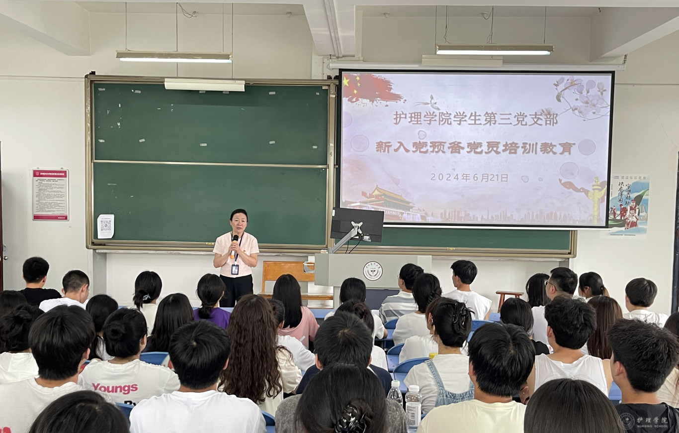 6月21日,为进一步加强党员队伍建设,增添党员新生力量。美加墨世界杯官方网站学生第三党支部在北校区2402教室召开党员发展大会。美加墨世界杯官方网站党委委员、院长李亚玲,学生第三党支部书记刘妍,副书记李茂盛及全体党员参会,会议由支部书记刘妍主持。