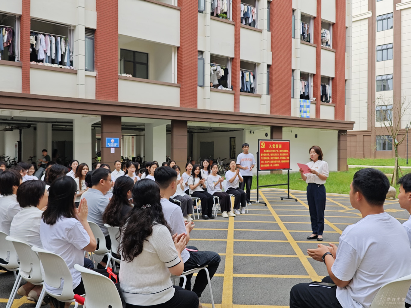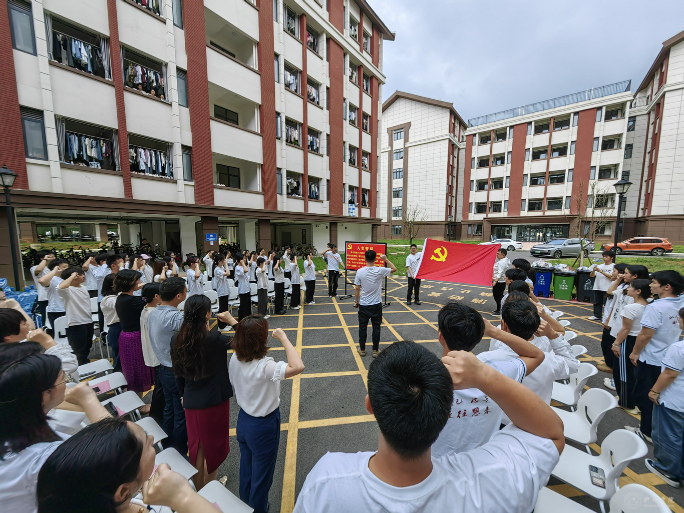 7月1日,为庆祝中国共产党成立103周年,推动学院特色党建工作深度融入“一站式”学生社区文化空间,美加墨世界杯官方网站师生党支部在云漫湖校区悦学苑“一站式”学生社区开展了“忠诚担当心向党 砥砺奋进迎七一”联合主题党日活动。学校党委学生工作部(学生处、武装部)处长王韬,副处长金晶、贲琛受邀到场指导,美加墨世界杯官方网站党委班子成员、教师党员代表及各党支部新发展党员参加,活动由学院党委委员、副处级组织员张黎主持。