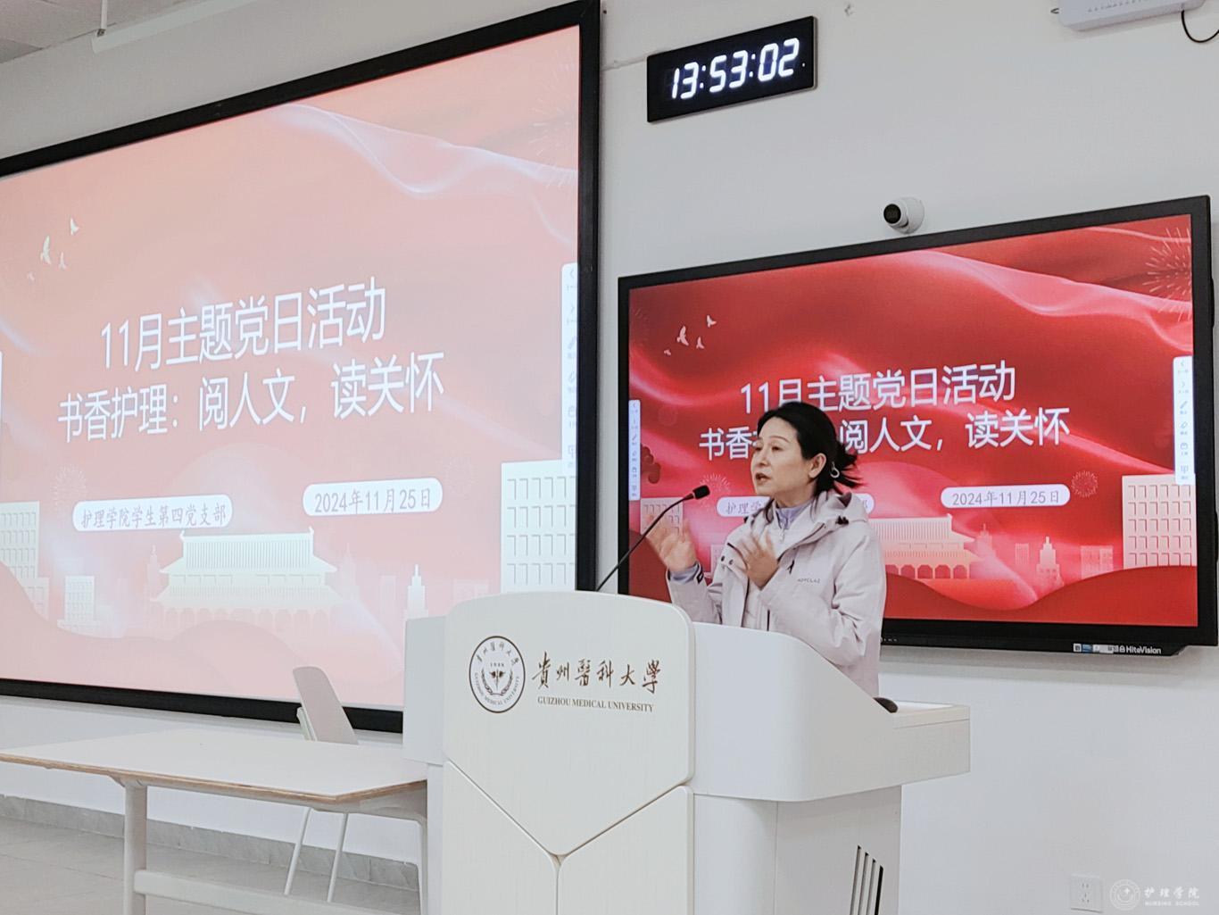 11月25日,美加墨世界杯官方网站学生第四党支部于云漫湖校区临床组团酬勤楼M204教室,开展“书香护理:阅人文,读关怀”读书分享主题党日活动,旨在鼓励引导护理研究生养成读书习惯,提升人文关怀沟通能力,给予患者温暖人文护理。美加墨世界杯官方网站副院长王秀红,副处级组织员张黎,2024级研究生辅导员殷艳及支部全体党员、2024级护理研究生全体参会,活动由班长邓秀平主持。