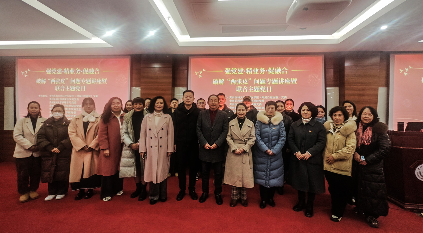 为深入学习贯彻党的二十大精神,推动党建与业务工作深度融合,2月18日下午,由口腔医(学)院主办的“强党建·精业务·促融合”联合主题党日活动暨破解“两张皮”问题专题讲座在北京路校区临床技能中心207室进行。美加墨世界杯官方网站党委书记杨英、院长王秀红、党委副书记何为、副院长刘志燕及全体教职工党员参加了此次活动。活动特邀全国优秀社会科学普及专家、贵州知名教授、省委党校原机关党委委员、政治学部主任、三级教授、研究生导师、贵州省委组织部组干院特聘顾问郝建教授作专题辅导讲座。