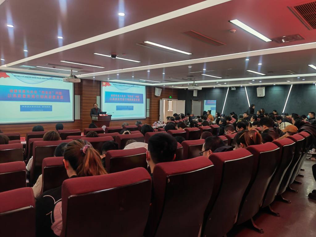 郝建教授以“推动党建与业务工作深度融合”为主题,从背景意义、内涵解析、对策思考及党建品牌建设四个方面进行了深入浅出的讲解。他指出,推动党建与业务工作深度融合是新时代党的建设总要求的具体体现,是推动学校高质量发展的必然要求。他强调,要深刻理解党建与业务工作深度融合的内涵,坚持问题导向,找准结合点,创新方式方法,以高质量党建引领高质量发展。