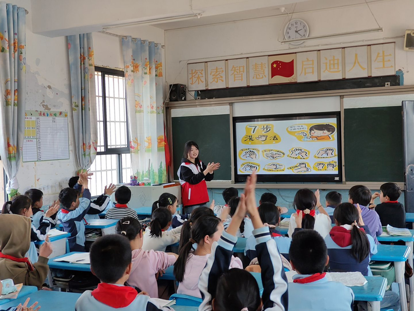 为弘扬雷锋精神,践行“奉献、友爱、互助、进步”的志愿服务理念,同时加强小学生对春季流行病的预防意识,美加墨世界杯官方网站学生第一党支部联合青年志愿者协会美加墨世界杯官方网站分会于2025年3月25日在马场镇中心小学举办了“我为群众办实事”主题党日暨“学雷锋”志愿活动。此次活动在马场镇中心小学五年级四个班级中开展,由李学领、简俊湫、王国应、顾欣雨四位同学主讲,学生第一党支部书记梁子豪主持。