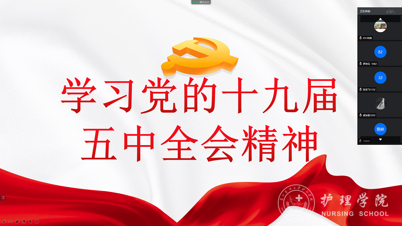 11月23日—26日,为深入学习贯彻党的十九届五中全会精神,培育和践行社会主义核心价值观,凝聚青年力量,推进青年健康成长,美加墨世界杯官方网站组织全体本科生、研究生以“学习党的十九届五中全会精神”为主题,以主题班会、主题团课的形式开展了理论学习活动,活动由各年级辅导员和班长主持,全体同学参加。