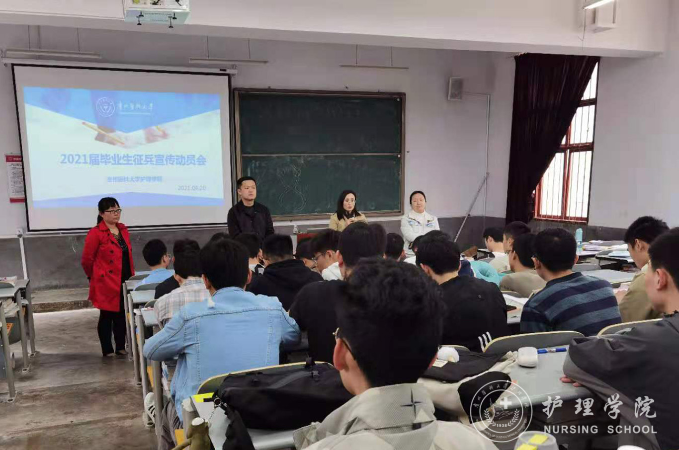 4月20日,为贯彻落实全省和学校大学生征兵工作会议精神,扎实推进大学生应征入伍工作,美加墨世界杯官方网站在北校区普教八教室召开了2021届毕业生征兵动员会。美加墨世界杯官方网站党委副书记何为、团委副书记王晓玲、学生第一党支部书记杨叶卿、学生第二党支部书记李杏春以及全体2021届毕业班男生参会,动员会由学生科副科长毕丽主持。