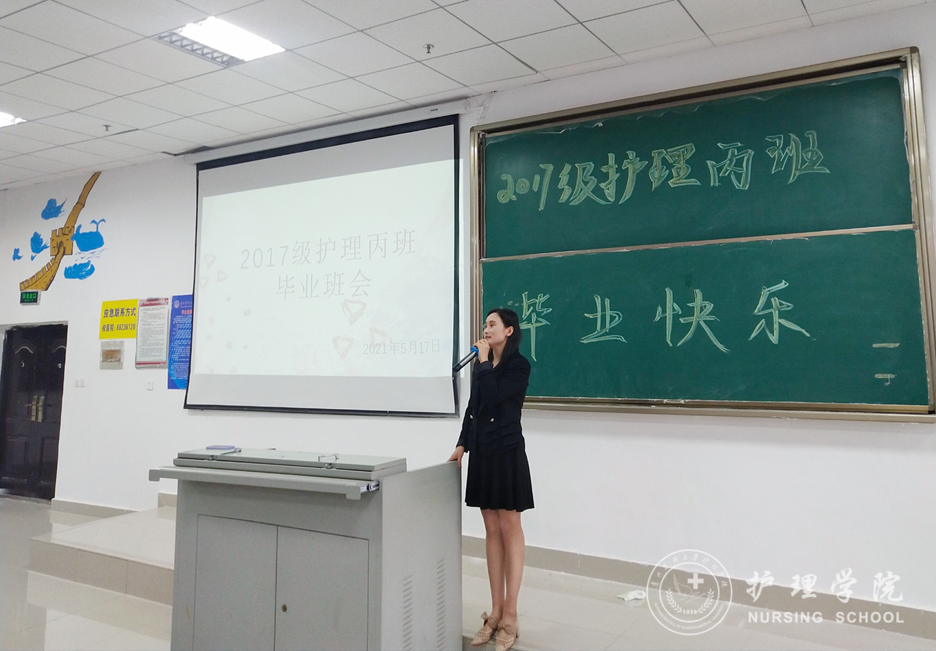最后,王晓玲与马景瑶共同寄语:梦想无限,未来可期。今天的离别不是结束,而是崭新的开始,踏入社会的未来之路,虽然坎坷不平,也要遵从本心,活出自己的模样。班会在一片掌声中落下帷幕。