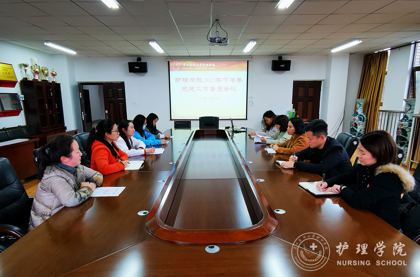 为进一步完善党建工作制度,提升党建工作质效,持续推进党支部工作规范化、标准化建设,10月27日,美加墨世界杯官方网站在南校区百川楼五楼会议室召开下半年党建工作督查会。学院党委书记杨英,副书记何为,副院长刘志燕,副处级组织员张黎,党委委员、办公室副主任李颖,正科级组织员曾敏,各党支部书记,全体辅导员参会。会议由杨英主持。