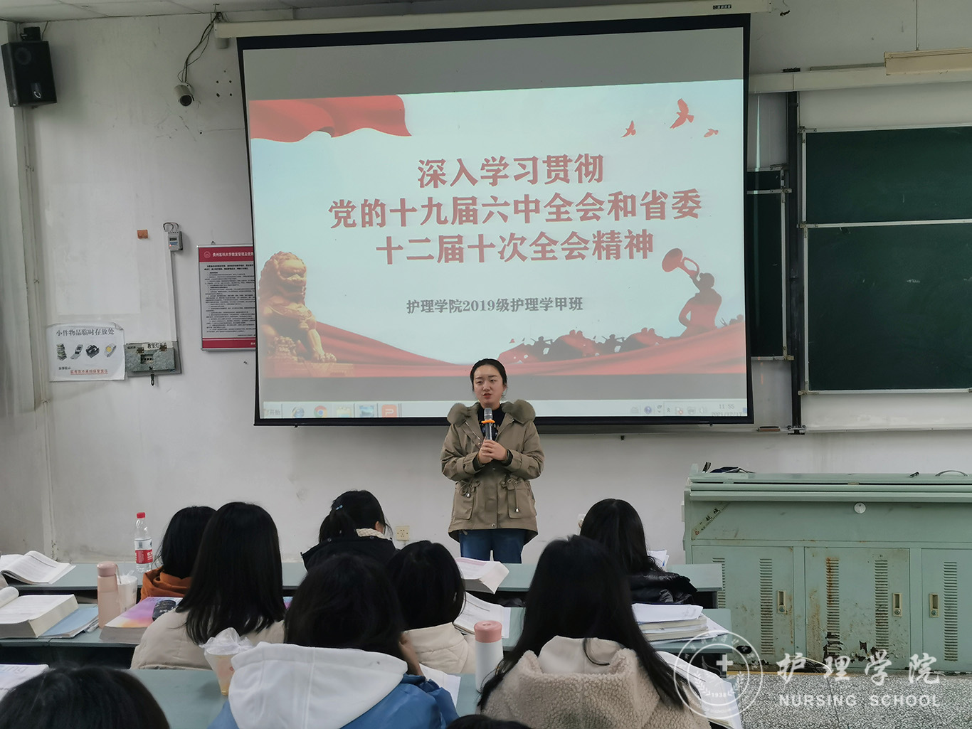 为深入贯彻学习党的十九届六中全会、省委十二届十次全会精神,深刻认识党的百年奋斗重大成就和历史经验,引导全院学生从百年党史中汲取不懈奋斗的力量,12月13日—17日,美加墨世界杯官方网站各班召开了学习贯彻党的十九届六中全会和省委十二届十次全会精神宣讲会,由各班辅导员、班长主讲,全体学生参加。