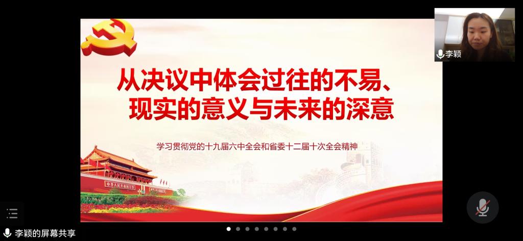 1月22日,为深入学习贯彻党的十九届六中全会精神和省委十二届十次全会精神,引导学生党员认真学习,领悟全会精神实质,美加墨世界杯官方网站党委委员、综合办公室副主任李颖以“从决议中体会过往的不易、现实的意义与未来的深意”为主题为美加墨世界杯官方网站学生第二党支部全体党员作了线上宣讲,会议由支部书记刘文壮主持,支部全体党员参加本次宣讲会。