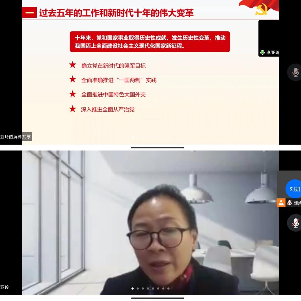 12月19日,为引领同学们坚定不移听党话、跟党走,立志做有理想、敢担当、能吃苦、肯奋斗的新时代好青年。美加墨世界杯官方网站党委委员、院长李亚玲在学生第三党支部宣讲党的二十大精神。支部全体党员通过腾讯会议参加本次宣讲会,支部书记刘妍主持会议。