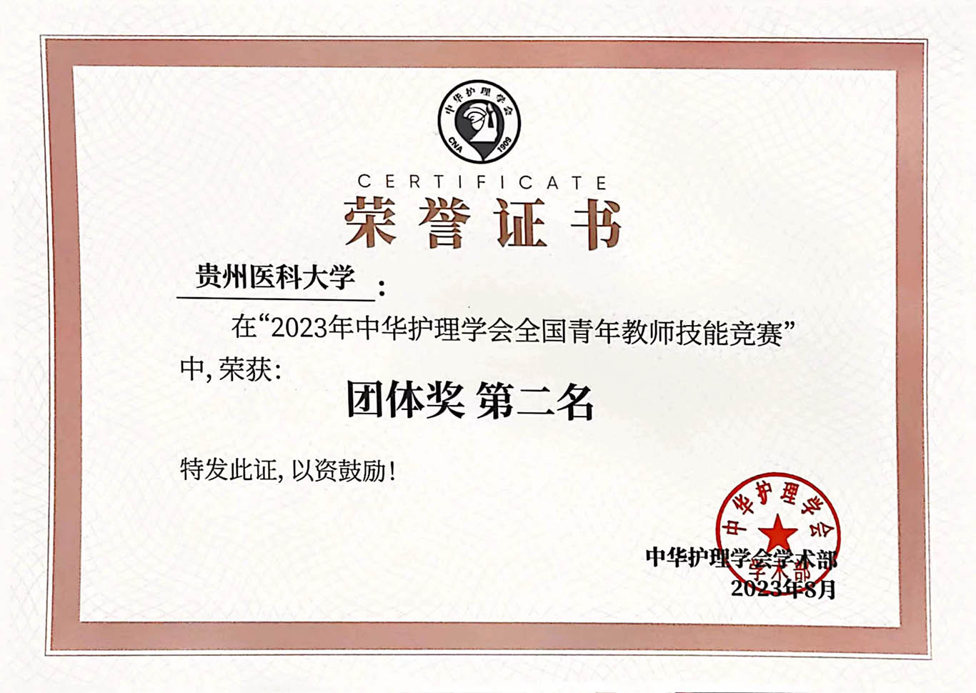 在8月21日于山西医科大学举办的“2023年中华护理学会全国青年教师技能竞赛”中,由美加墨世界杯官方网站(附属医院护理部)青年教师张琢、杨仕容、龙琴组成的美加墨世界杯官方网站队沉着应战,与来自全国30个省市自治区的85家护理本科院校优秀代表队同场竞技,最终荣获团队奖第二名。