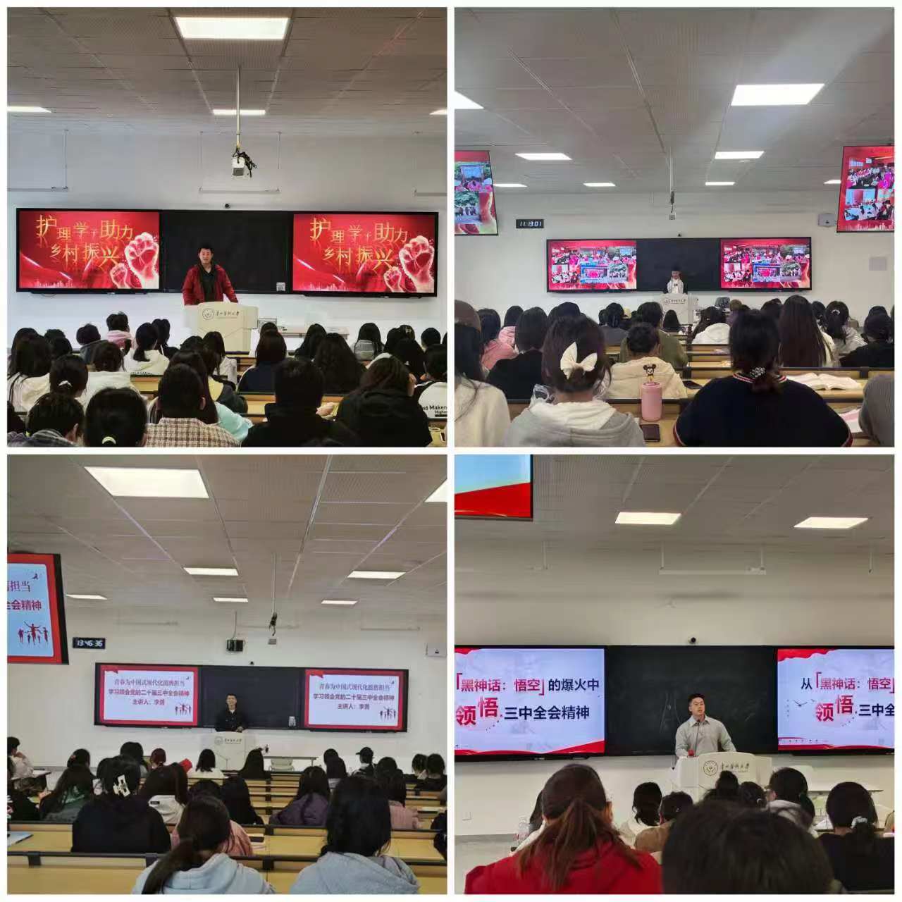 各班精心策划,通过主题宣讲、案例展示等形式,围绕全会提出的深化改革、创新驱动等议题,结合学生实际从内外纵横四个方位引导学生入脑入心。一是引导学生内向发力,深入学习、深化转化,加强学习“练内力”;二是引导学生外向发力,善借资源、打通路径,多法并用“借外力”;三是引导学生纵向发力,解决问题、寻根朔源,真抓实干“挖潜力”;四是引导学生横向发力,求真务实、敢作善为,加强作风“增活力”。同学们积极参与,踊跃分享了理论学习心得和专业实践成果,展现了新时代青年信念如磐、“青”力“青”为,表明了新时代青年将理论知识转化为实际行动的能力和决心。